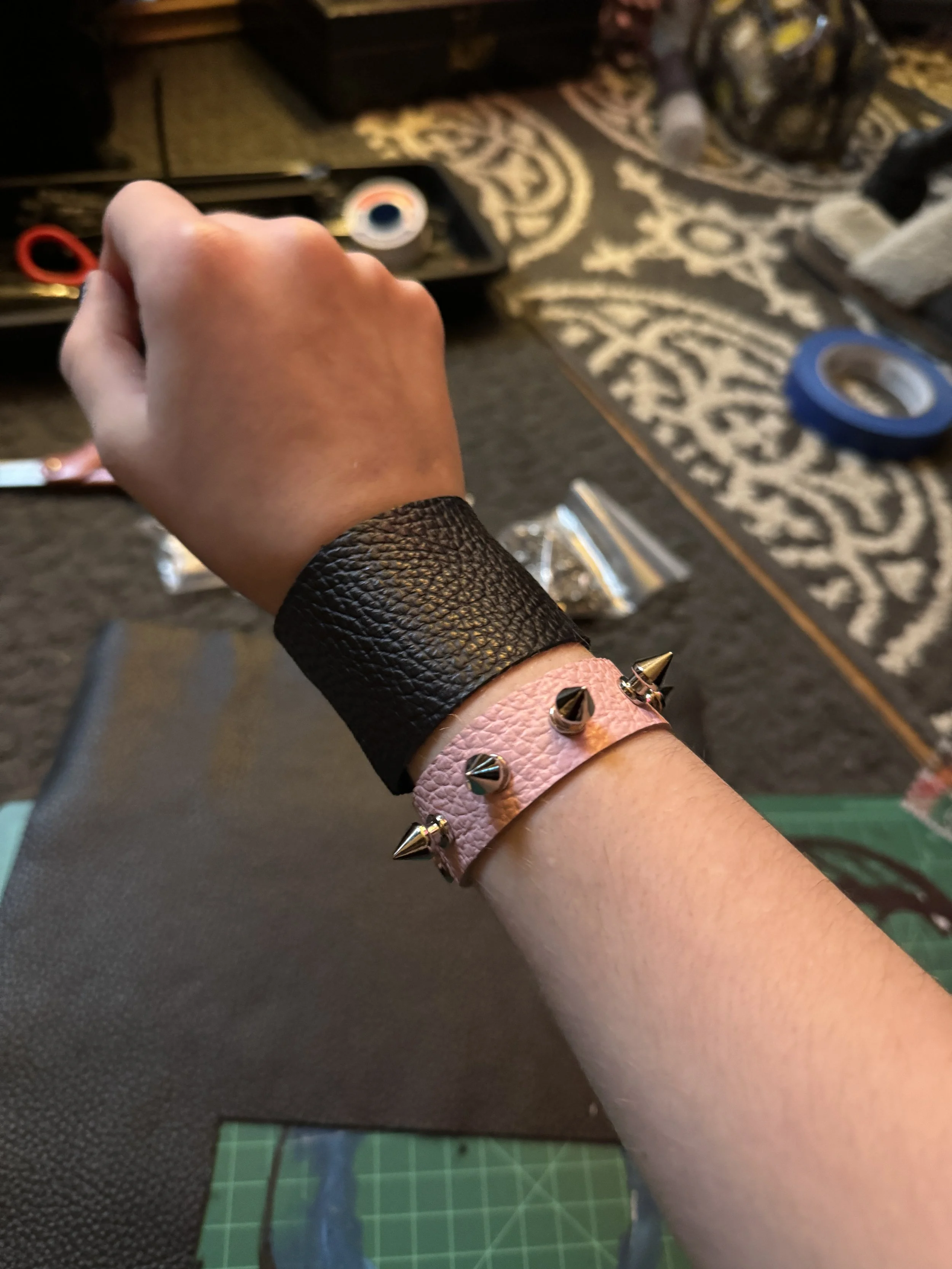 costume illustration and design, pattern drafting, pleats, distressing, beading/kandi, faux fur, wig styling, wig coloring, screenprinting, graphic design, leatherwork, machine sewing, hand sewing